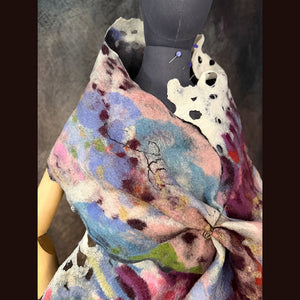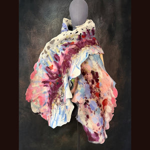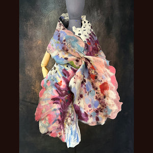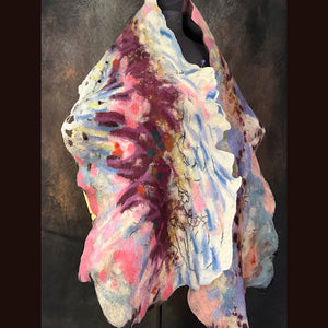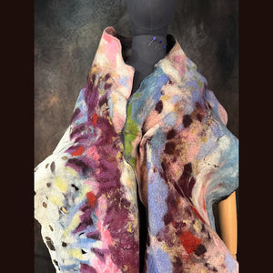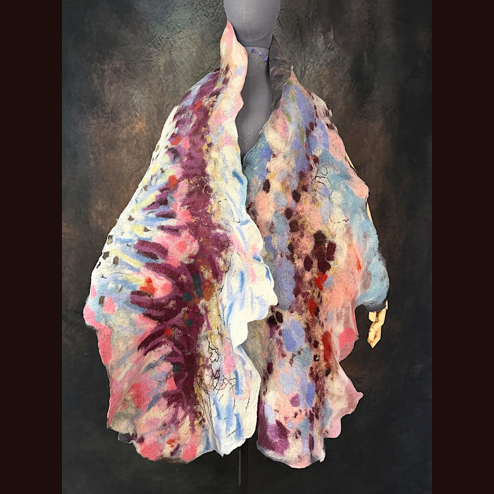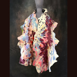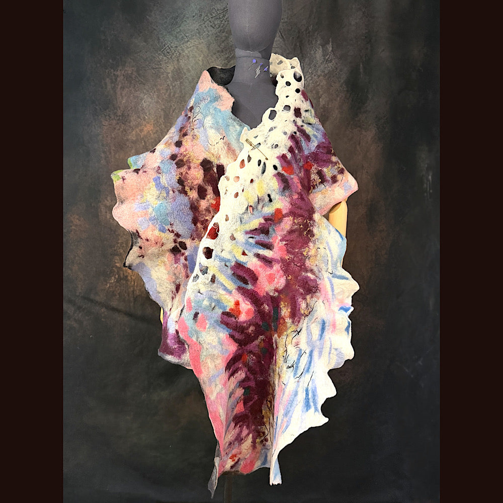 I Always mix lots of different textures together. Art yarns will be showcased better if you use more simple yarns with them. It will also keep the overall weight lighter. You can do two rows of art yarns with two rows of singles, when knitting or 4-5 rows of singles then 3-4 of art yarns.