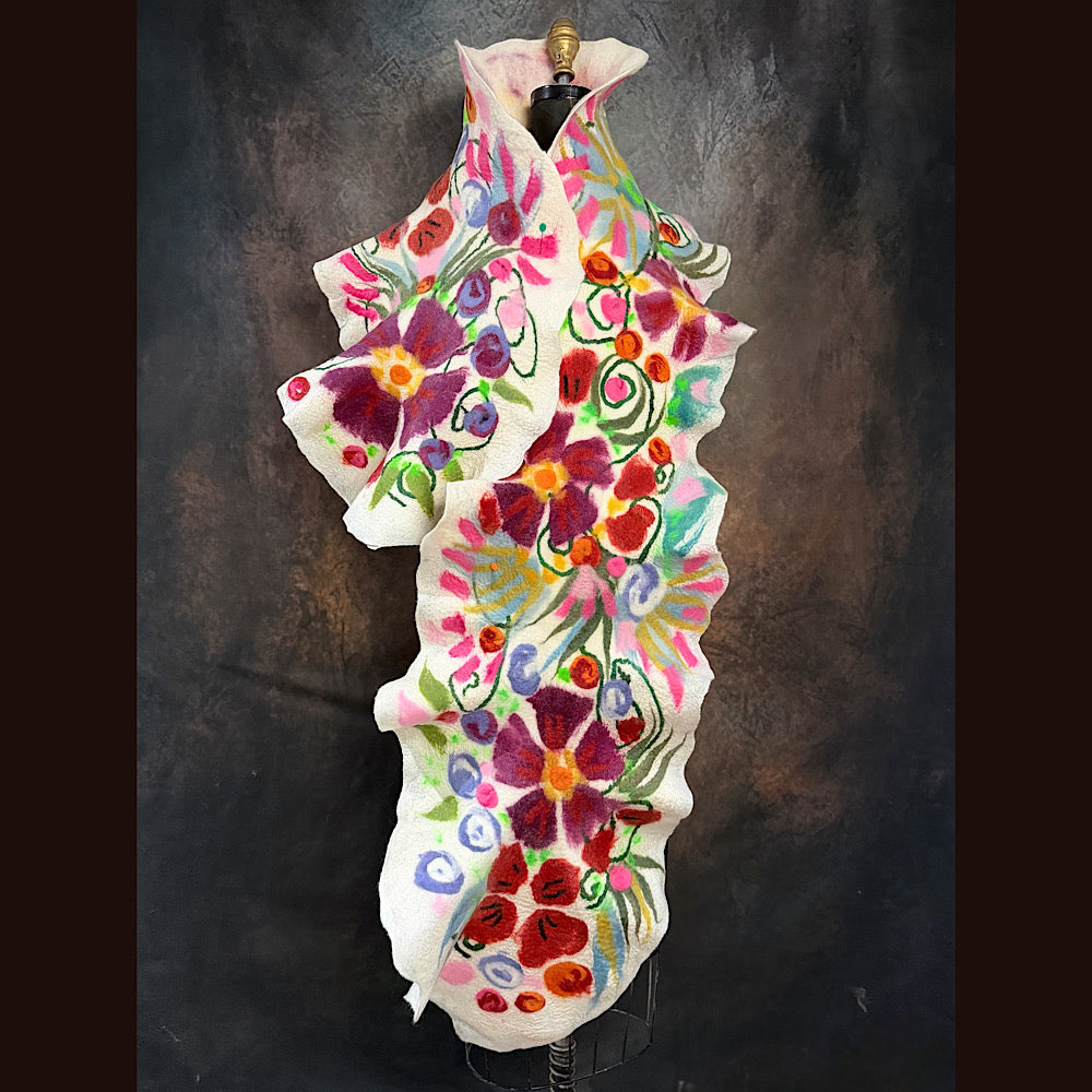 OOAK Handmade wool Felted Scarf 81” X 14” Original art work