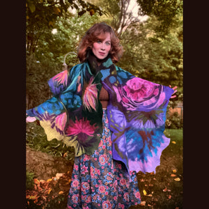 Expertly crafted from merino fiber, this felted scarf features a striking floral design that is sure to make a statement. Individually hand-dyed to achieve rich, saturated colors, this versatile piece can be worn in multiple styles.