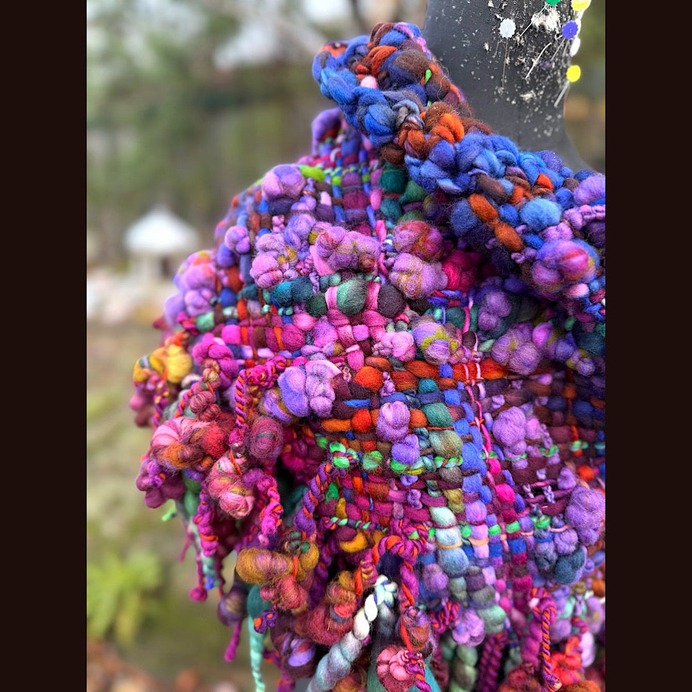Alternate rows of heavy textured art yarns with single or smoother yarns, it will keep the work lighter and showcase the texture contrasts